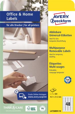 Etikett, univerzális, eltávolítható, 45,7x21,2 mm, AVERY ZWECKFORM, 480 etikett/csomag
